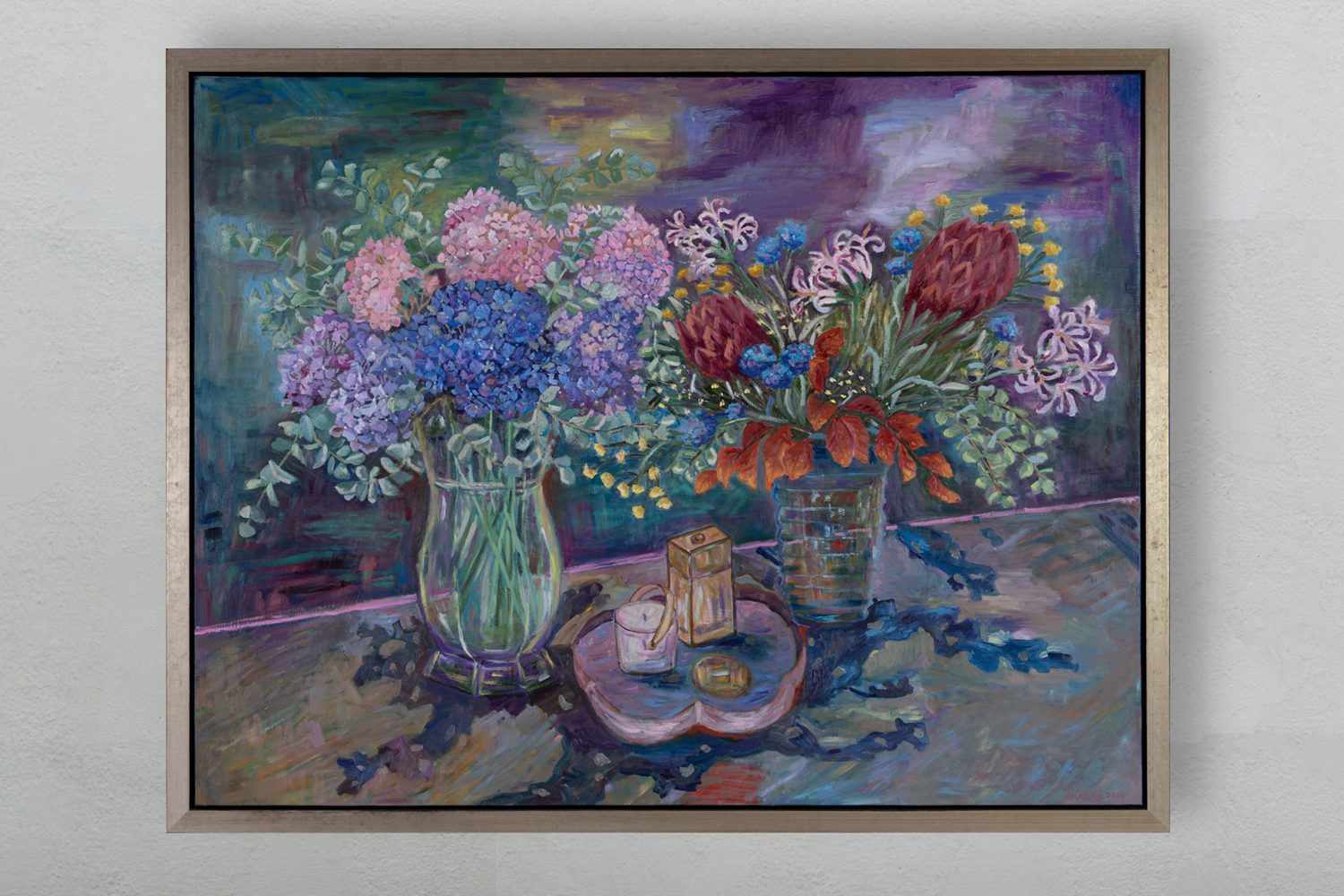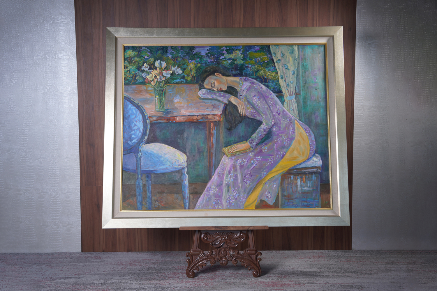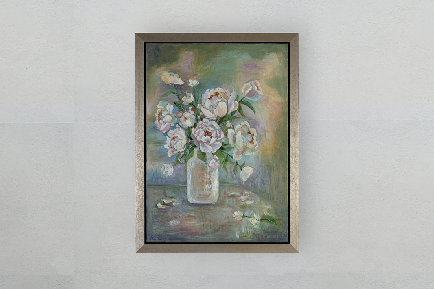 Le Trang’s Still Life paintings exude dynamic vitality and atmospheric resonance. Through bold brushwork and deft manipulation of colour, Trang infuses her still life scenes with an ethereal quality, blurring the boundaries between representation and abstraction. Each stroke of paint becomes a meditation on the fleeting nature of perception, as objects dissolve into shimmering pools of colour and light.