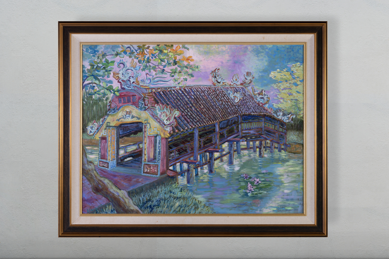In her artistic portrayal of the architectural landscape of her hometown Hue City, Le Trang navigates the fluidity of time, juxtaposing elements of antiquity with markers of modernity. Her paintings become palimpsests of historical sedimentation, where past and present converge in a complex interplay of memory and oblivion.